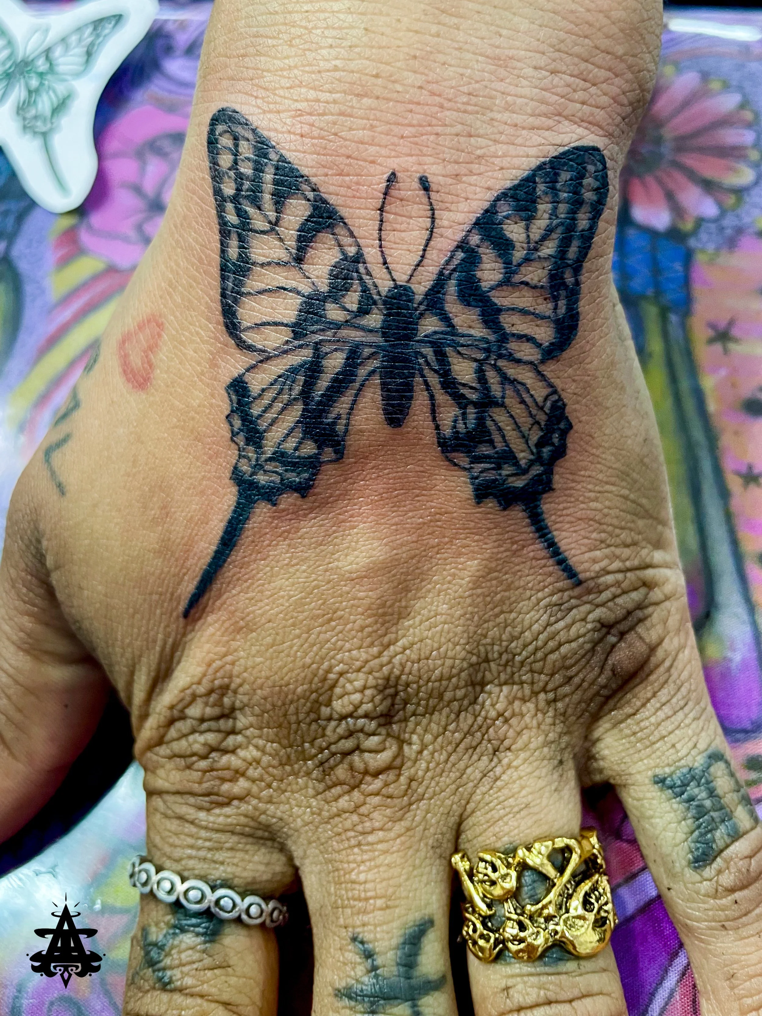 Shannon “the Bee” Cummings, the newest member of the AIT crew, has been tattooing and piercing for about a year. With a BFA in Illustration from the Savannah College of Art & Design and seven years of experience as an art educator for Highlands County School Board, Shannon brings a strong foundation in the visual arts to translate artwork from paper to skin.
