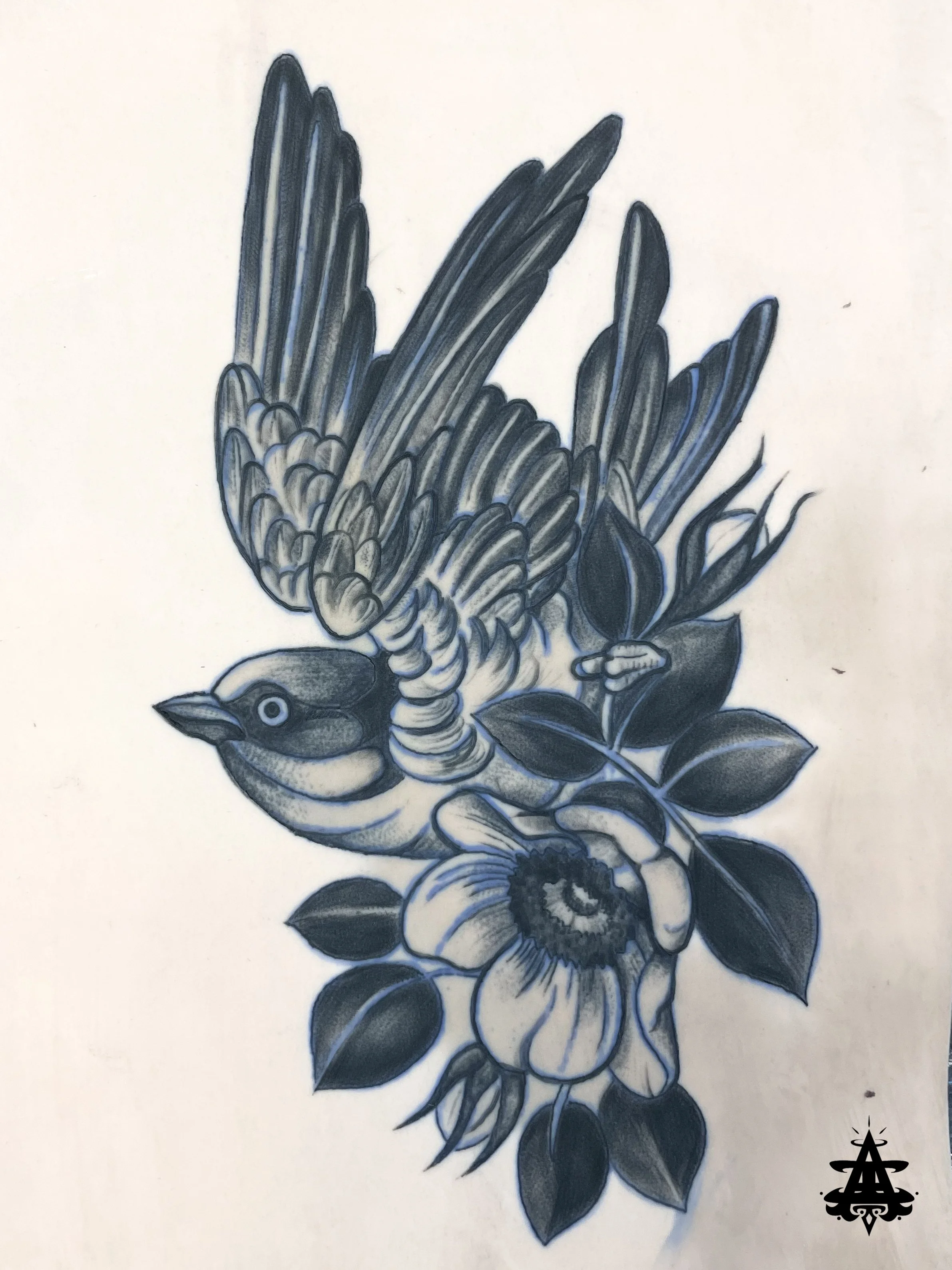 Outside of tattooing, Shannon pursues her personal art through mixed-media paintings of Floridian wildlife and volunteers for both the Heartland Cultural Alliance and SOUL Animal Rescue. She is passionate about the environment, animal welfare, Dungeons & Dragons, competitive swimming, collecting patches, and all things Tim Burton. These interests often spark inspiration and influence her unique artistic style.