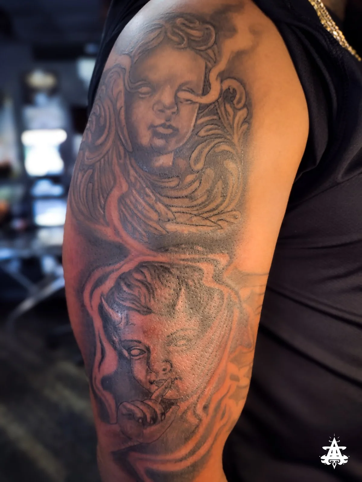 Outside of tattooing, Jessie is devoted to his faith and enjoys airbrushing, working on cars, and listening to music. Above all, he treasures time with his family, finding balance and inspiration in caring for the people he loves most.